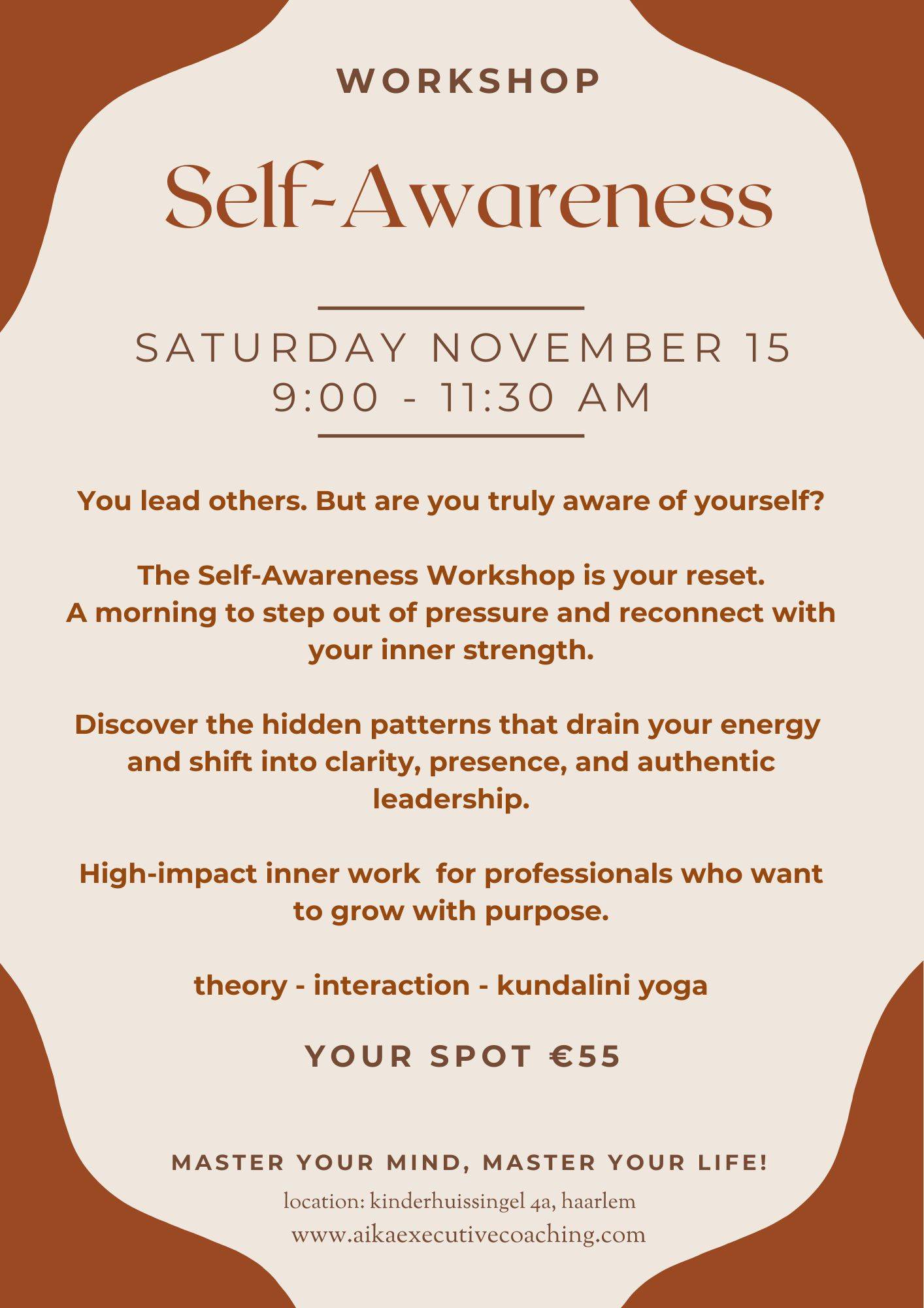 In this Self-Awareness Workshop, you’ll uncover the hidden patterns that limit your energy and clarity and reconnect with the deeper intelligence that already lives in you.